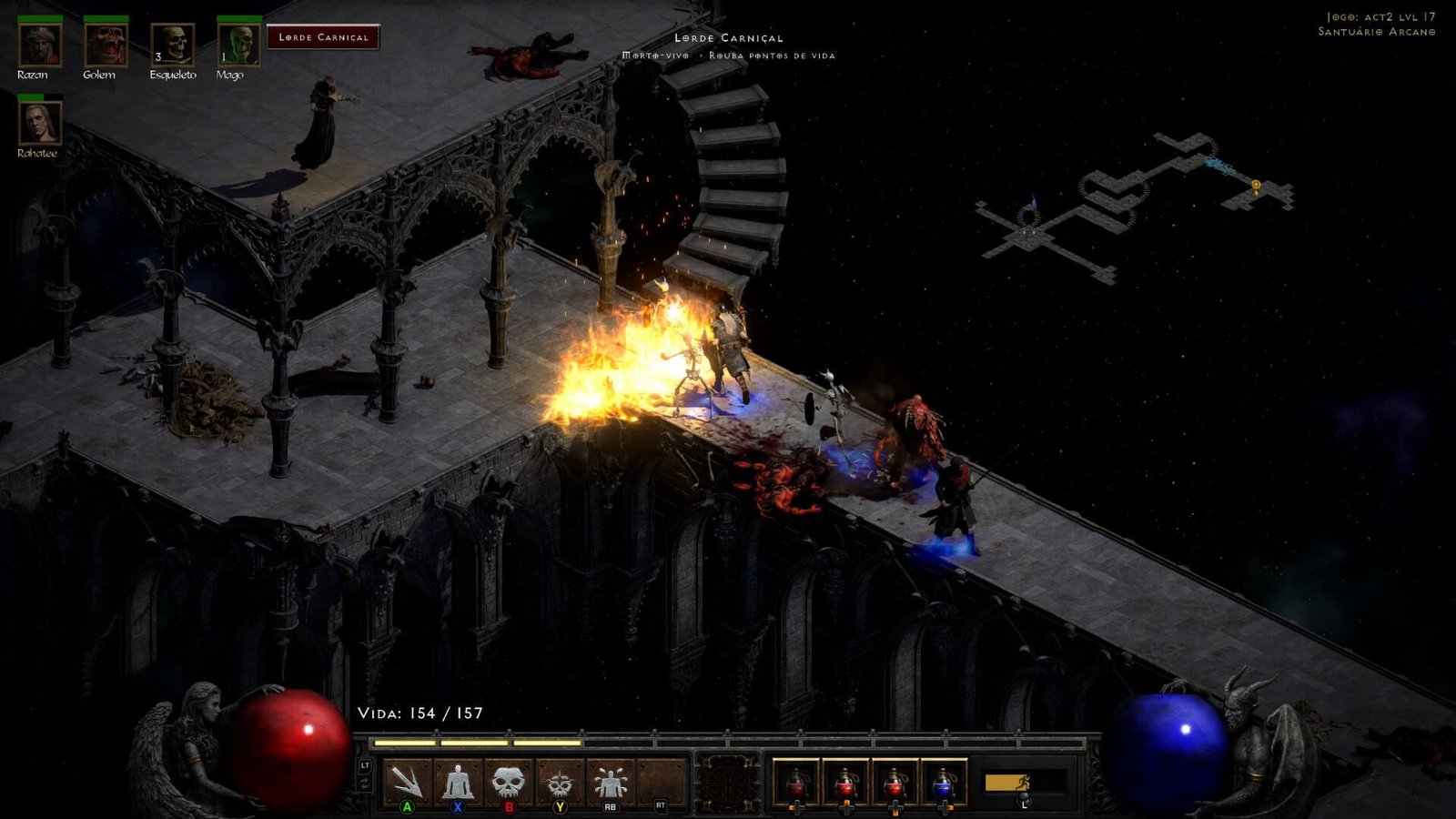 Seguindo o sucesso de Diablo III nos consoles, Diablo II: Resurrected foi lançado para todas as plataformas da geração passada e atual. Rola crossplay entre plataformas da mesma família (PS4 e PS5, por exemplo), mas a progressão fica salva em sua conta na Battle.net, sendo possível carregá-la em qualquer outro console. E, como esperado, a interface de Diablo II foi adaptada para receber suporte ao controle. No PC, claro que a maioria dos jogadores irá optar pela combinação tradicional de teclado + mouse, mas a experiência que tive com controle (de Xbox One) + mouse foi ainda melhor.