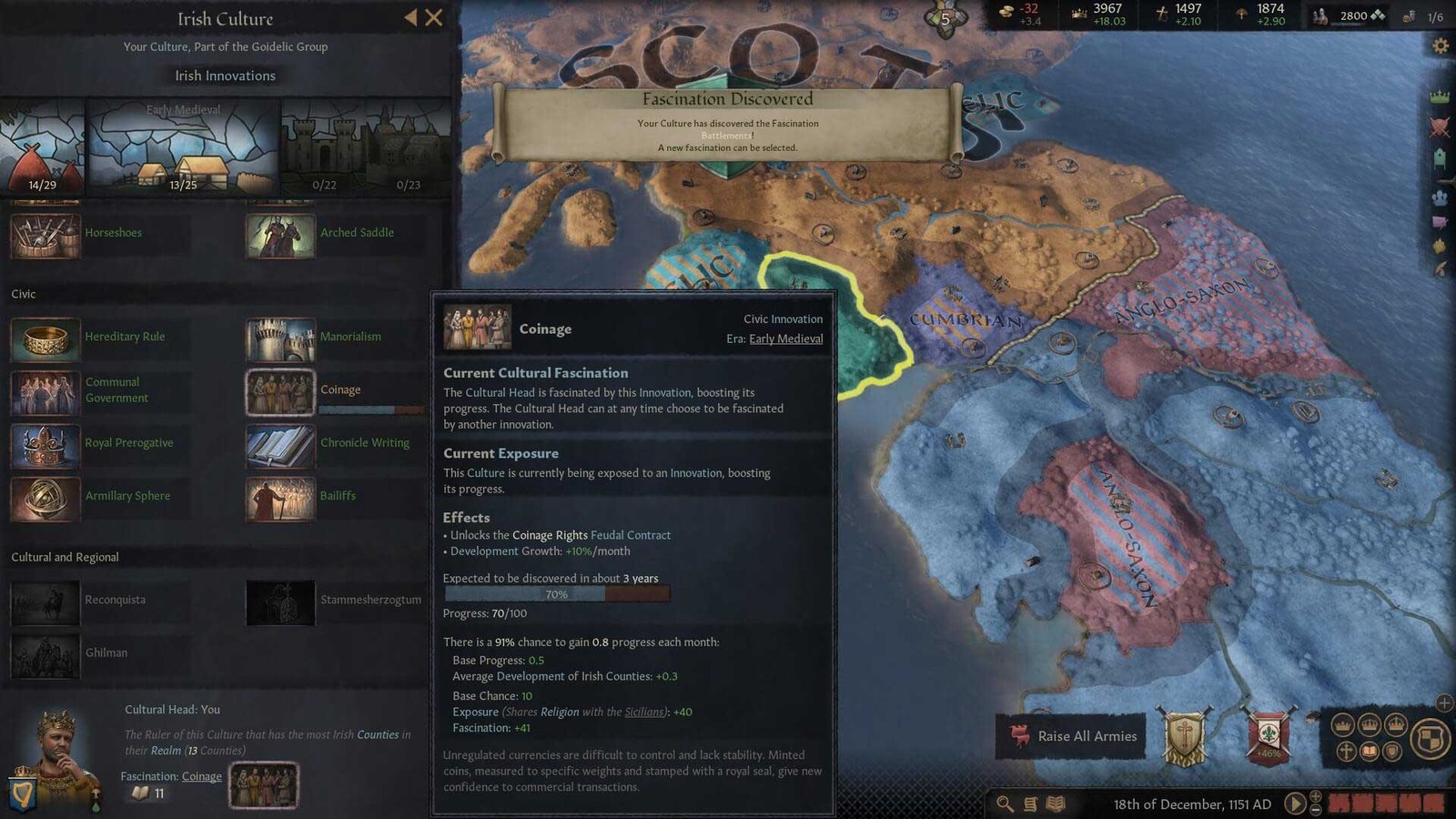Não é novidade que a igreja estava diretamente ligada com a ciência durante a Idade Média. Entretanto, os avanços científicos da época muitas vezes são ignorados devido a essa aproximação, não reconhecendo o crédito dos cientistas medievais que influenciaram bastante no desdobramento do conhecimento moderno. Buscando representar fielmente a época no Crusader Kings, as inovações e avanços tecnológicos estão ligados diretamente à igreja, sendo uma das mecânicas mais engenhosas, interessantes e subestimadas do jogo.